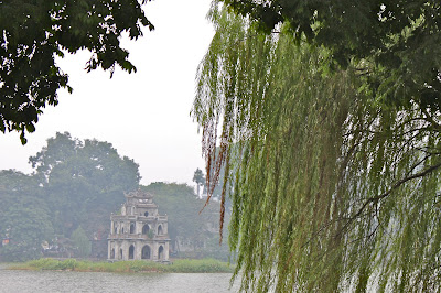 We awoke this morning to our last PA broadcast in Hanoi that we have come to know and love. Still having no idea what is being said in that broadcast, we enjoy the singing and know the time is now 730AM, time to start the day. We sat down for a quick breakfast in the Hanoi Elegance Elite lobby, Joel going for an omelette and Dasha with two fried eggs. The peach juice is a delicious alternative to orange juice. Seeing another couple bring their bags down for the trip to Halong Bay, we realize it is time for us to get moving. As we finish our meal, we are entertained by two British men, one of whom has become noticeably impatient for his yet-to-be-served breakfast sandwich and we look on as he takes three bites after it was placed in front of him, then he zooms off on a motorbike. His friend who stays behind describes him as "lugubrious" to the Vietnamese waiter and we giggle knowing that the waiter has no idea of the meaning of such a word. (Editor's note: lugubrious - adj., mournful, dismal, or gloomy, esp. in an affected, exaggerated, or unrelieved manner)